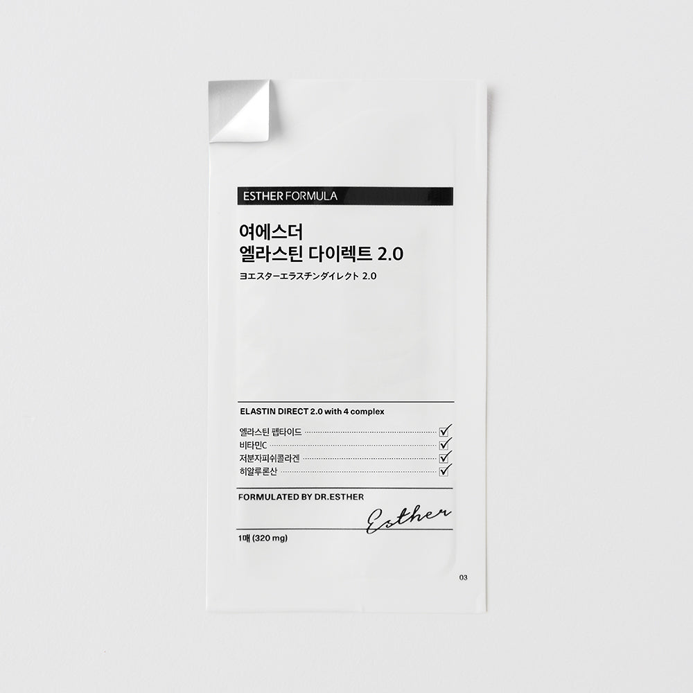 原材料名: カツオエラスチンペプチド、レモンジュースパウダー、緑茶エキスパウダー、米ぬかエキスパウダー、紅参濃縮液パウダー、パイナップル果汁パウダー、ホワイトトマト抽出粉末、低分子フィッシュコラーゲン、蒟蒻抽出物、鮭白子エキス/プルラン、酸化デンプン、グリセリン、香料、β-シクロデキストリン、酸化防止剤(ビタミンC、ビタミンE)、ヒドロキシプロピルメチルセルロース、甘味料(α-グルコシルトランスフェラーゼ処理ステビア、アスパルテーム・L-フェニルアラニン化合物)、酸味料、着色料(クチナシ黄色素、クチナシ青色素)、ヒアルロン酸、 安定剤(アラビアガム)、微粒二酸化ケイ素、ビタミンD、(一部にサケを含む)